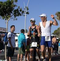 Para mi hay varios momentos que recordaré toda mi vida, y esos si que quiero reflejarlo. Son momentos donde las emociones retenidas durante esos meses de entrenamientos afloran, sobre todo en forma de lágrimas. Momentos como en la salida de la natación, donde te encuentras con mil quinientos compañeros unidos por un mismo reto, pendientes del pistoletazo de salida, cada uno con su historia, con sus vivencias, y sin embargo el ambiente es silencioso, pocas palabras, pocos gritos, solamente perturbado por un aplauso espontáneo de todos al unísono, del pistoletazo de salida y de ruido de los primeros nadadores en comenzar, todo ello en el momento del amanecer, que más puedo contar. Momentos como cuando te encuentras pedaleando sólo por una isla, unas carreteras y unos paisajes desconocidos, únicamente vistos en tantos reportajes y videos que has visto para motivarte en estos meses. Tantas bicis en los boxes y sin embargo, te encuentras tan solo; la cabeza se entretiene con cosas inimaginables. La alegría desbordante de los kilómetros donde amigos y familiares acompañan y nos animan, contrasta con los kilómetros de absoluta soledad y silencio en otras partes del recorrido, teniendo todos como denominador común el aire y viento de la isla, que afortunadamente este año no ha mostrado toda su furia con los corredores. Momentos como cuando después de los ciento ochenta kilómetros de la bici te bajas de ella agradeciendo su acompañamiento sin ningún problema mecánico, y donde tus piernas cobran un sentido nuevo para ti. La pesadez aparece, no corres, ni tan siquiera andas de la misma manera, y los miedos de la incertidumbre de si podrás acabar hace que aparezca tu preocupación, que va desapareciendo a medida que vas recorriendo metros. Momentos extraños, donde todos estos meses has pensado que la carrera a pie iba a ser lo peor, y que no te habías equivocado, pero que pese a correr solo, el fervor y acompañamiento de la gente y compañeros hace que el maratón sea distinto a como lo habías imaginado. Y sobre todo momentos donde unos metros antes de cruzar la meta, ya ves a tu familia y amigos, que has sido durante todos estos meses la conexión entre la locura y la cordura, de días buenos y malos, de apoyo y comprensión; ves que te abrazan y corren a tu lado, entrando en meta junto a ti, comprobando, ahora sí, que ya no están tan preocupados por ti, y que todos estos meses de inquietudes se acabarán, al menos por ahora.
